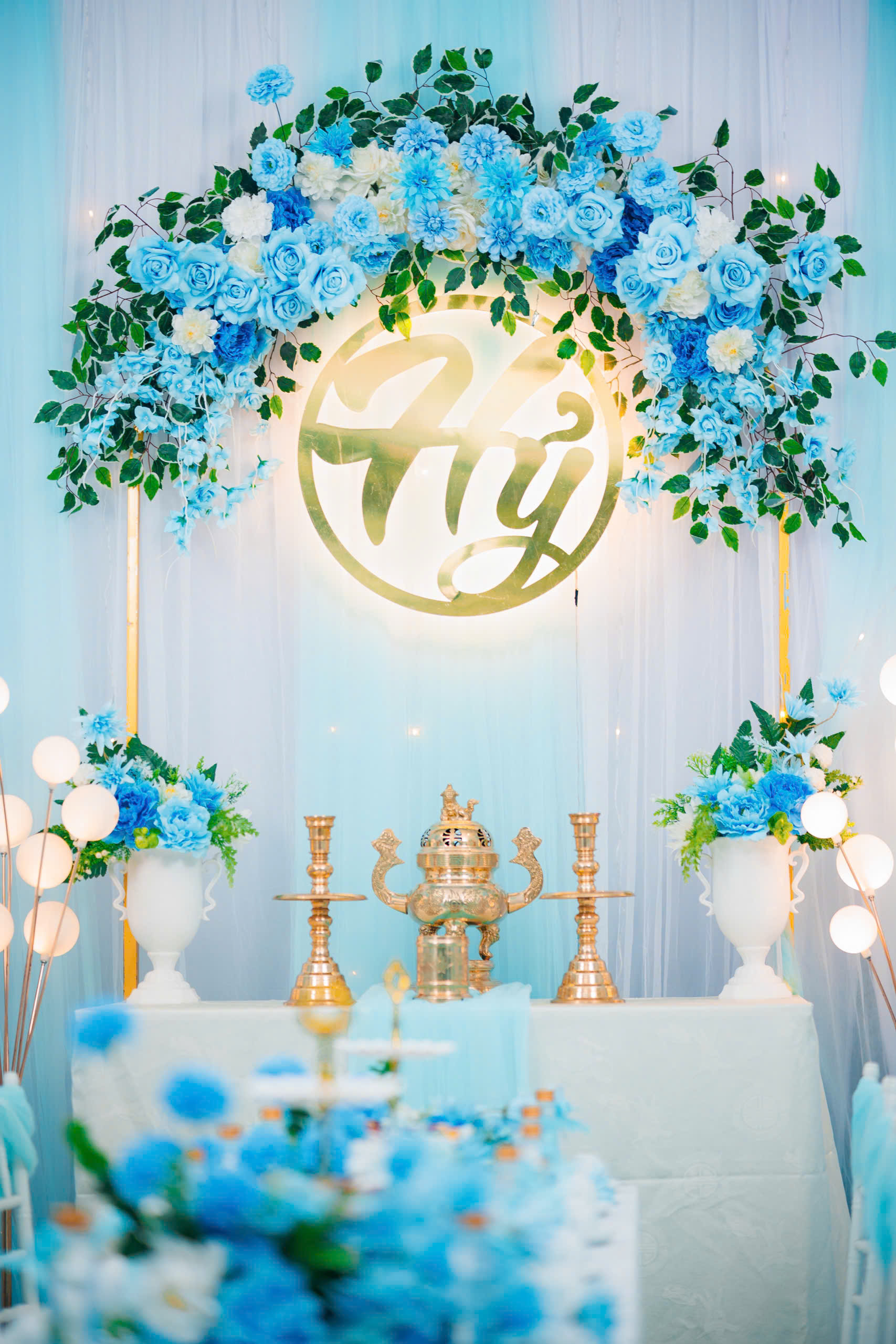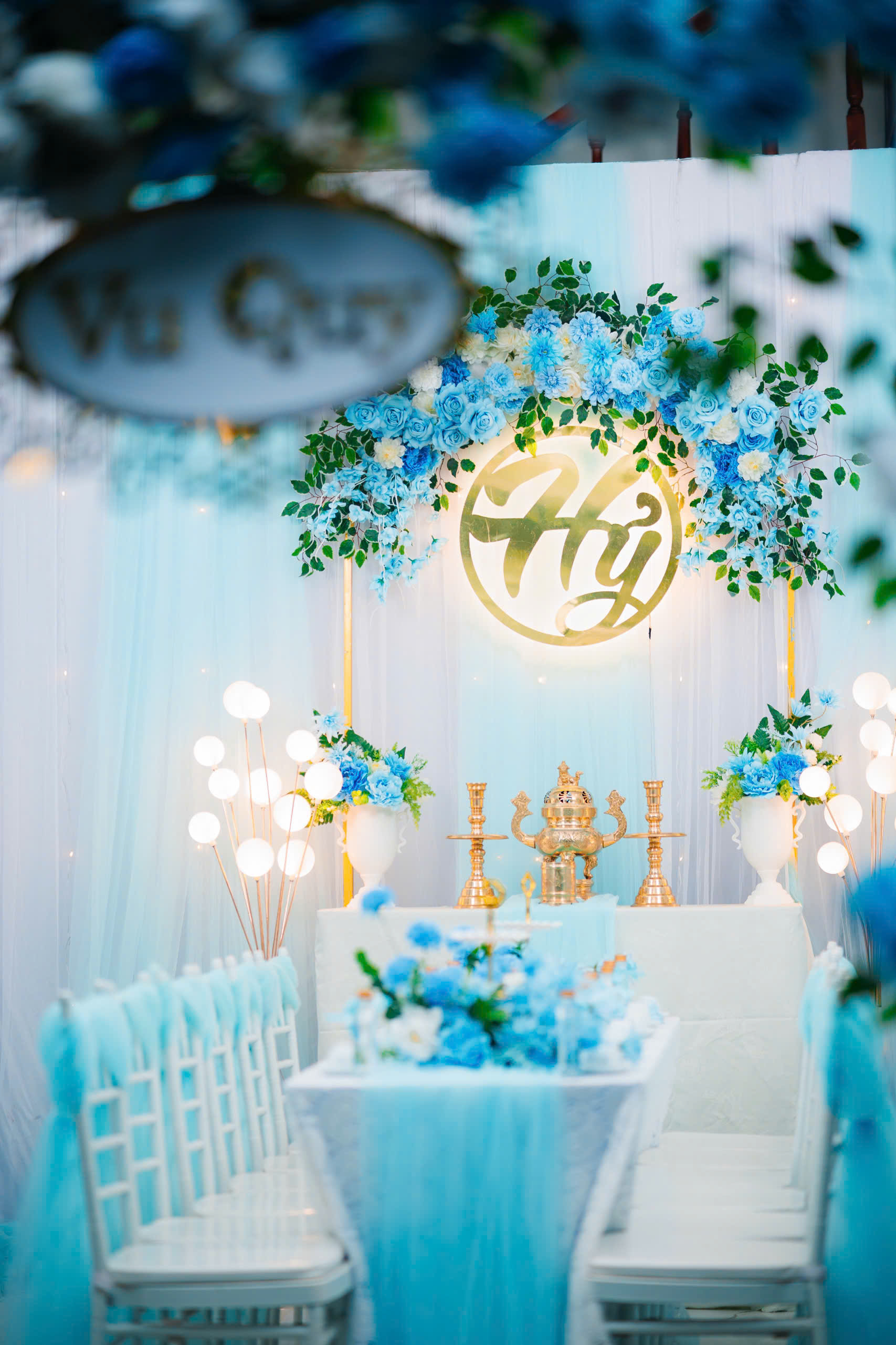 Trang Trí Gia Tiên Tone Xanh Dương – Sắc Thanh Khiết Cho Ngày Cưới Hiện Đại